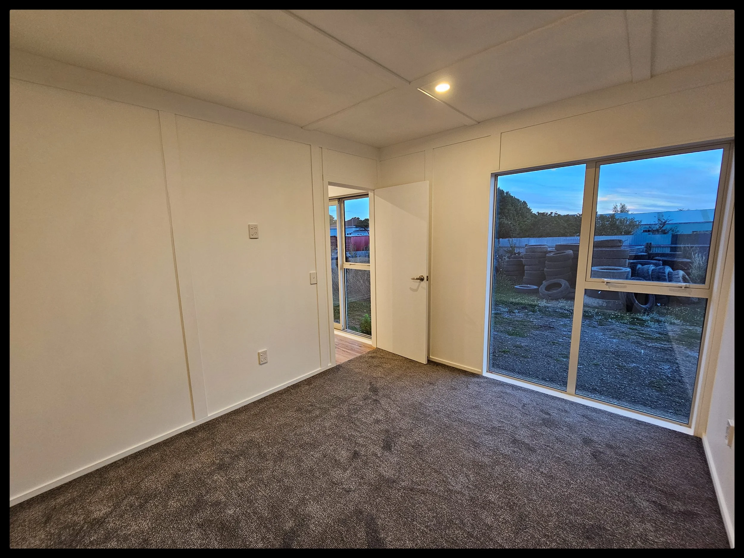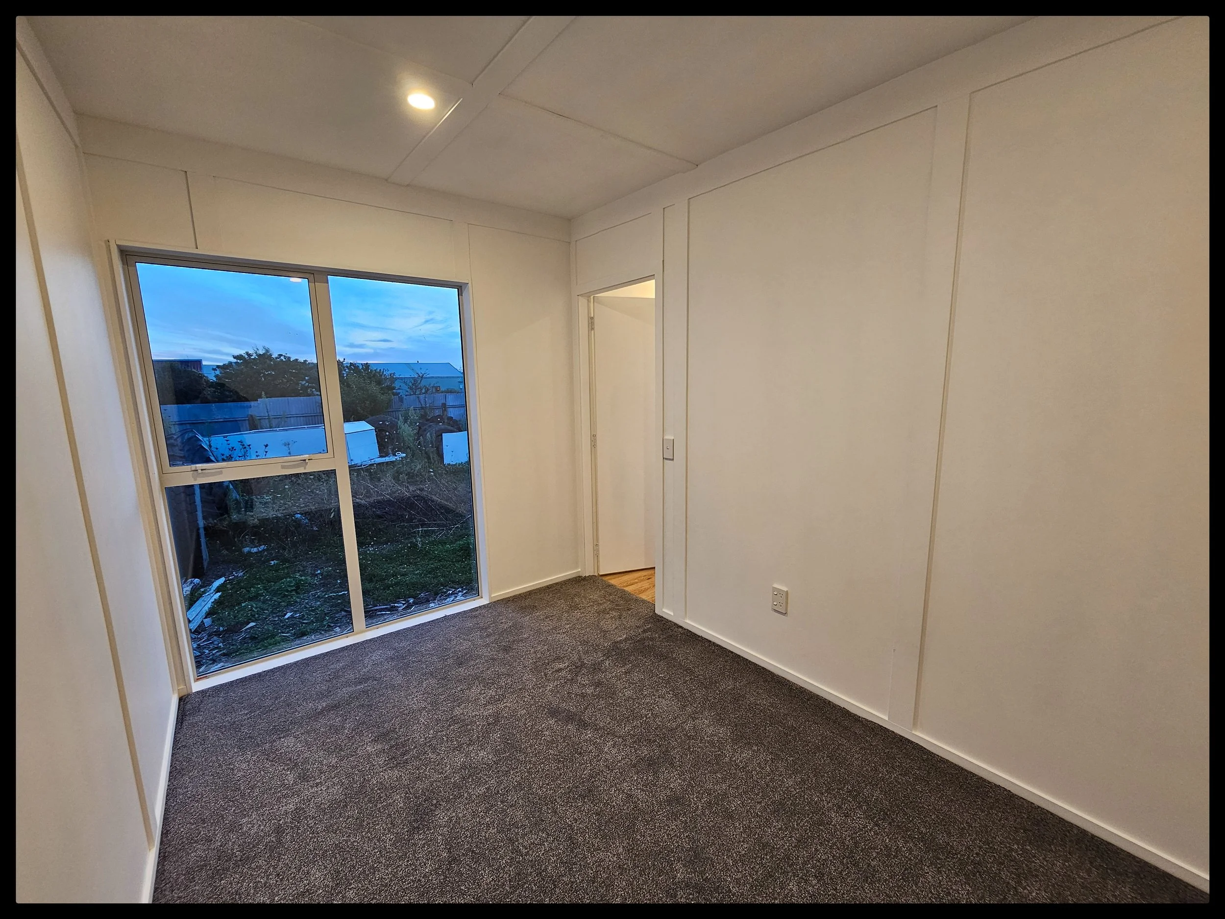 All timber frame construction, with Colorsteel 5 Rib cladding and roofing in Titania, double glazed windows / doors, 10mm GIB internal linings. Fully insulated from subfloor to ceiling.